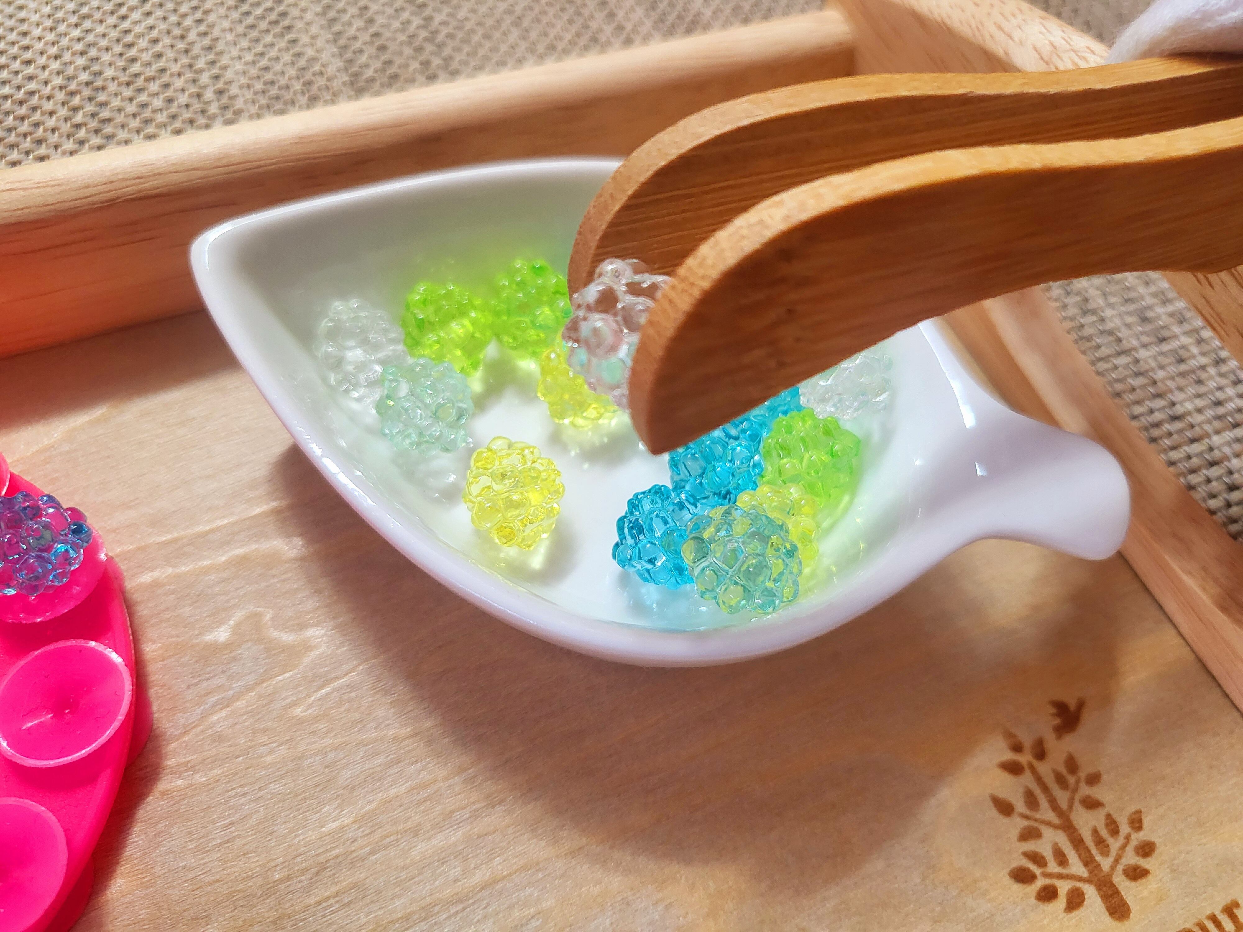 ビーズの形やサイズなどを変えたり、トングを変えたりして少しずつ難易度を上げていきましょう。
